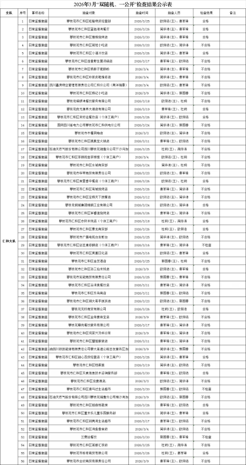 ******消防行政處罰、行政許可公示.doc 2026年3月“雙隨機(jī)、一公開檢查結(jié)果公示.xls 2026年4月“雙隨機(jī)、一公開”抽取任務(wù)公示表.xls